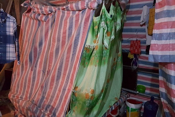 Nơi ở của vợ chồng chị Mận được quây bằng bạt. Ảnh: Nhật Linh