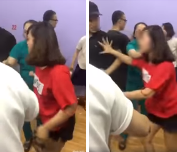 Về phần cô nhân tình (mặc áo đỏ), sau khi thấy sự việc đẩy lên đỉnh điểm, cô này mặc cho mọi người can ngăn đã rút dép xông lên chỉ tay thẳng mặt chửi bới, thách thức chị vợ để “ăn thua đủ”.