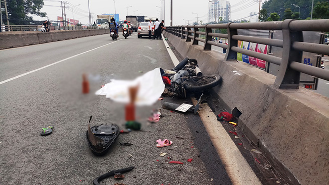 Vụ tai nạn xảy ra vào khoảng 12h 15 trưa 2/6 trên cầu vượt ngã tư Amata (TP. Biên Hòa, Đồng Nai).