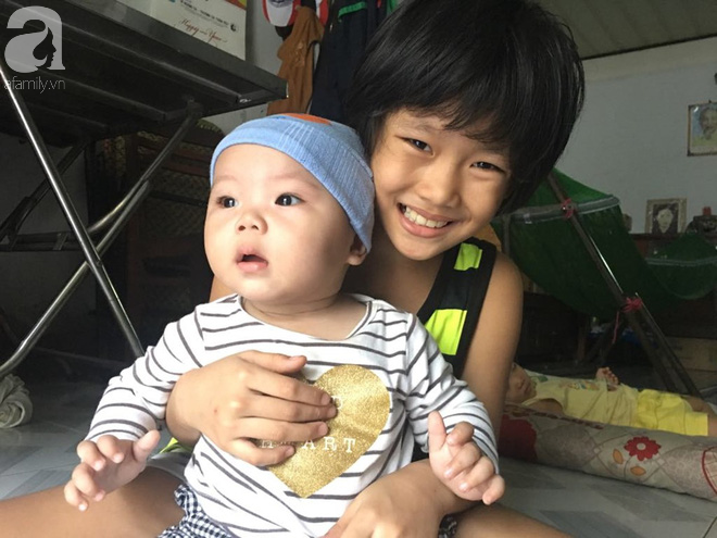 Hình ảnh cô bé nhỏ nhắn phải trông đứa em 2 tháng tuổi cho mẹ đi làm khiến không ít người xúc động.