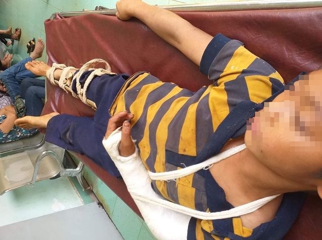 Bé trai 11 tuổi nghi bị hàng xóm đánh trọng thương phải nhập viện. Ảnh: Dân Trí