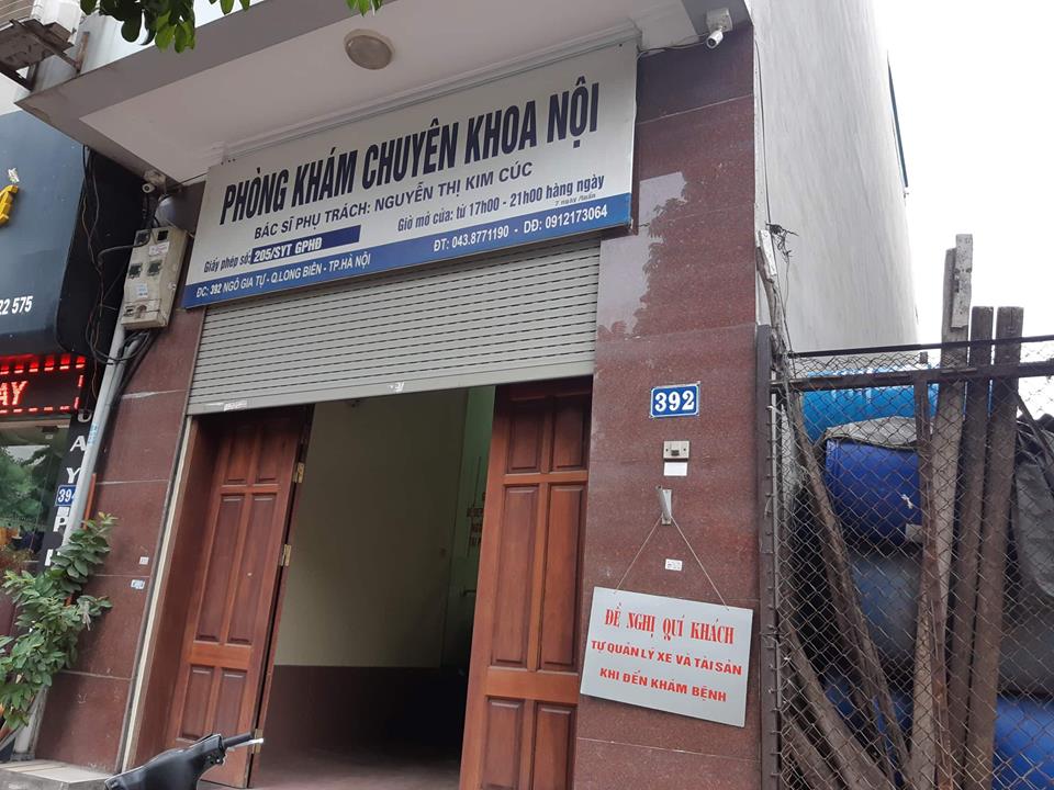 Hiện tại Công an quận Long Biên đã tiến hành niêm phong phòng khám trên để phục vụ công tác điều tra. Theo thông tin ban đầu, chiều ngày 15/10, sau khi cháu B. có biểu hiện sổ mũi, sốt 38.5 độ C, tiêu chảy, bố mẹ cháu đưa cháu đến phòng khám tư của bác sĩ Nguyễn Thị Kim Cúc, địa chỉ tại 392 Ngô Gia Tự, quận Long Biên, để thăm khám.