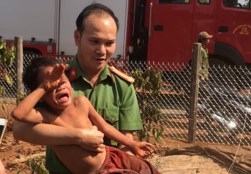 Cháu bé sau khi được giải cứu vẫn bị hoảng loạn.