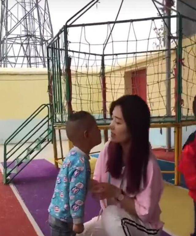 Cô giáo trẻ đã phải ngăn cậu bé lại và đáp trả bằng một nụ cười.