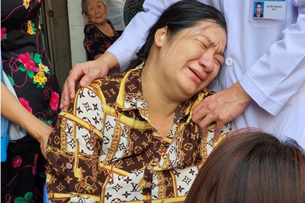 Tới cửa nhà, chị gục xuống, sờ khuôn mặt K., khóc nấc: “Nó còn thế kia mà anh, đang nằm ngủ đẹp trai thế kia mà anh”, theo ghi nhận của tờ Tổ Quốc.