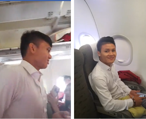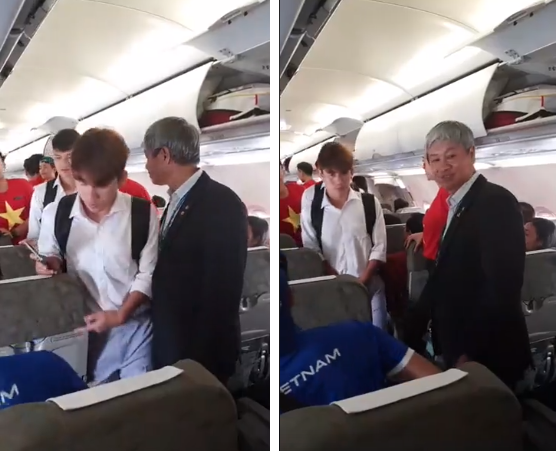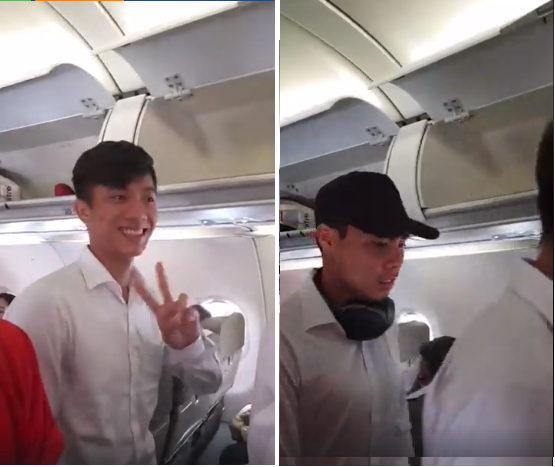 Clip: Các cầu thủ và đoàn thể thao Việt Nam trên phi cơ. Nguồn: Sơn Lê.