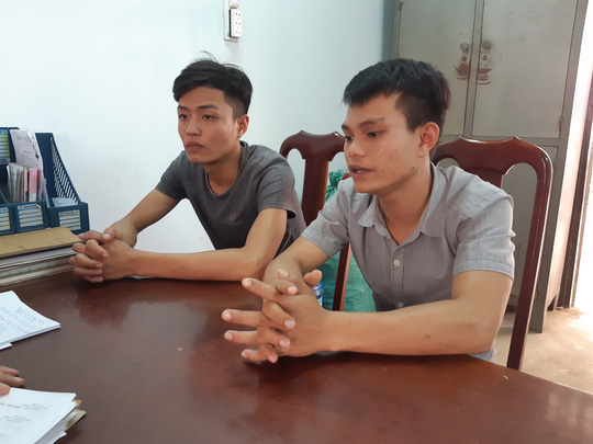 2 đối tượng Nguyễn Duy Uy và Lê Thành Tùng tại cơ quan công an. Ảnh: báo Người lao động.