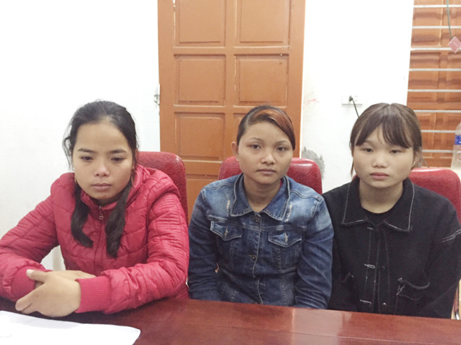 Moong Thị Liên (ở giữa) tại cơ quan công an.