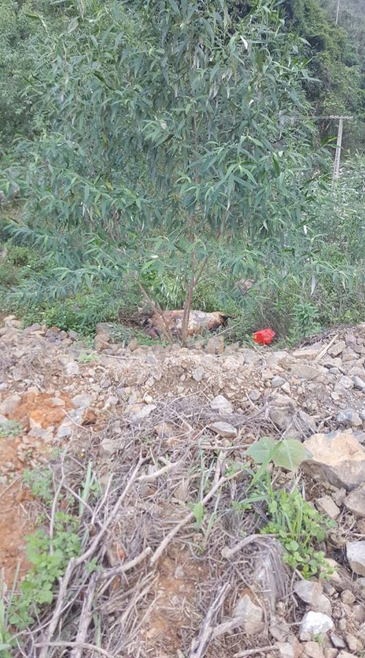 Lợn chết vứt ở dọc đường đèo Bông Lau.
