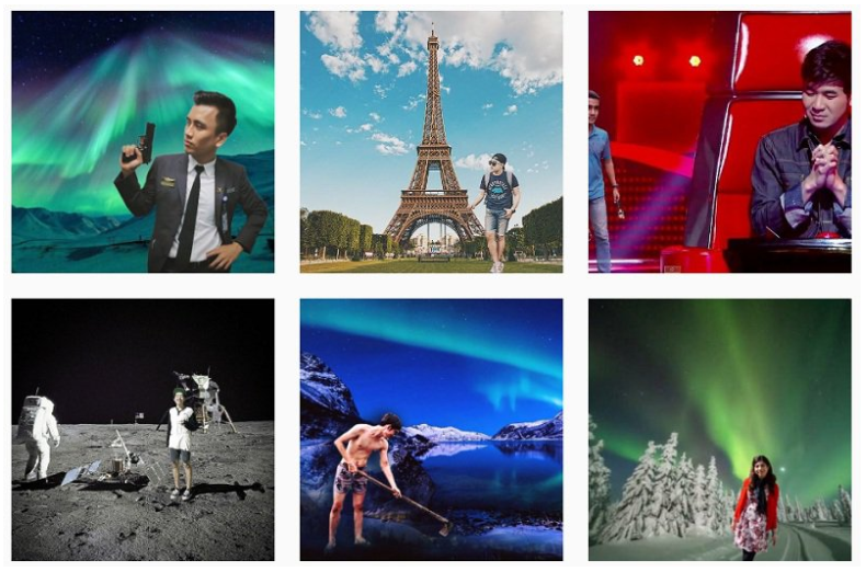 Chẳng những ghép mình vào ảnh chụp phong cảnh có sẵn, cô nàng còn chăm chút photoshop chỉnh sửa chi tiết cho thêm phần lung linh nữa cơ.