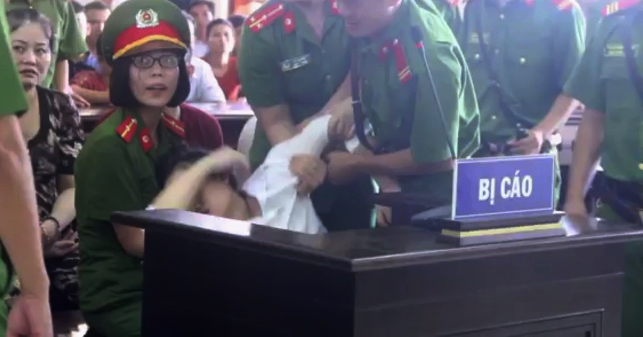 Nghe xong mức án dành cho mình, bị cáo Hồ Thị Huệ ngất lịm tại phiên tòa. Cán bộ dẫn giải phải dìu bị cáo Huệ đưa về trại tạm giam.