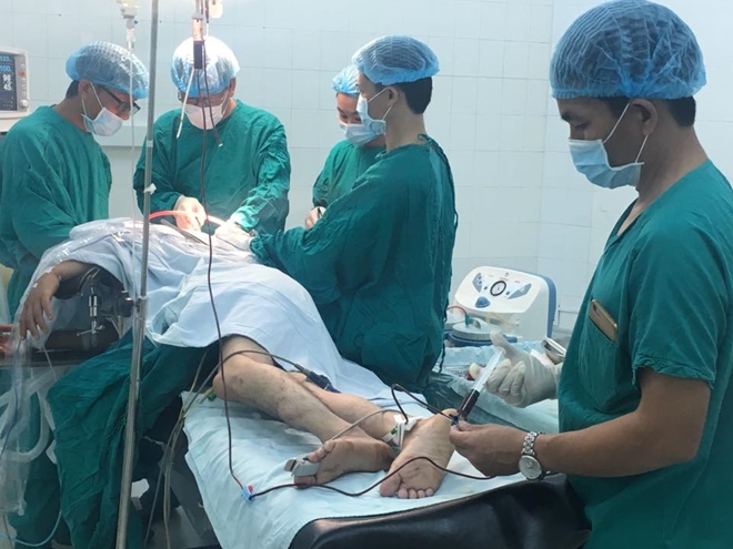Anh D. được các bác sĩ tiến hành phẫu thuật. Ảnh: Công an nhân dân.