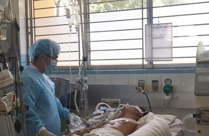 Bác sĩ Thủy cho biết, bệnh nhân đã ở trong tình trạng suy hô hấp nặng, huyết áp tụt nên ngay khi nhập viện, các bác sĩ đã đặt ống thở, phải thở hoàn toàn bằng máy; dùng thuốc trợ tim để hỗ trợ tăng huyết áp cho bệnh nhân. Bệnh nhân cũng được dùng thuốc chống co giật.