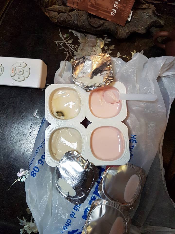 Kiểm tra lại những hộp sữa chua đã mua, anh Đạt bất ngờ phát hiện sản phẩm có nấm mốc màu đen. Ngay sau đó, anh Đạt thông báo cho đại diện cửa hàng Kids plaza và đem hộp sữa chua bị hỏng tới BV Quân y 103 để kiểm tra.