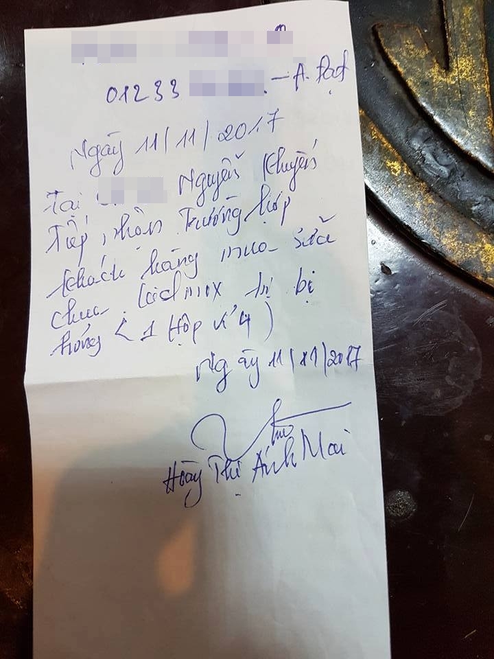 Giấy viết tay ghi lại việc tiếp nhận vụ việc.