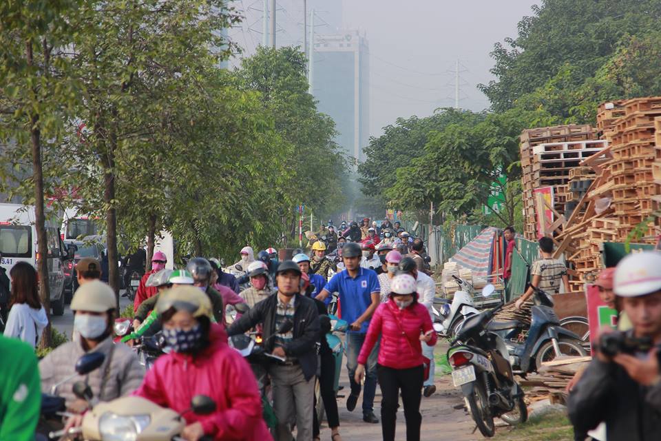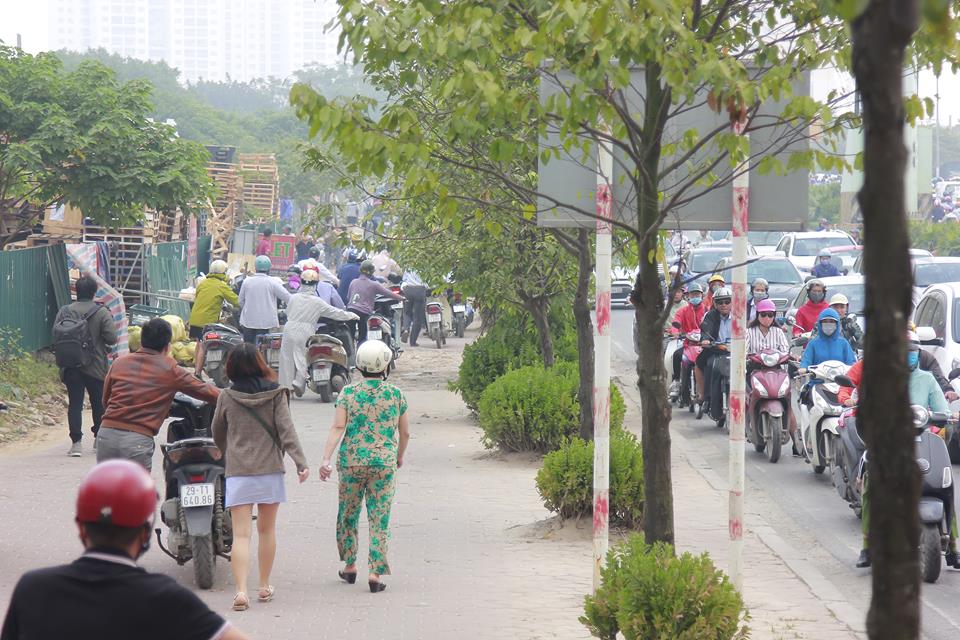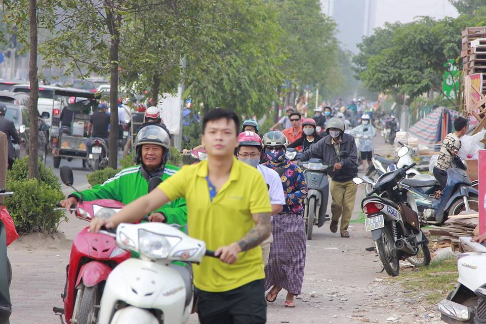 Hàng trăm người dân thủ đô nối đuôi nhau đi ngược chiều trên đường Tố Hữu sáng 6/11.