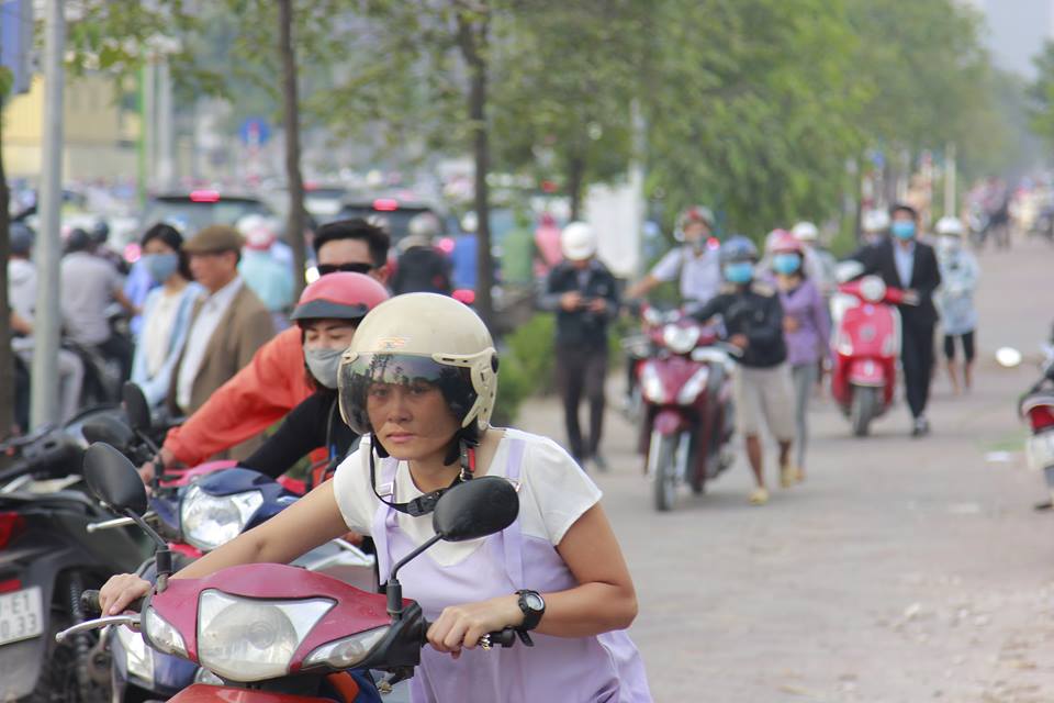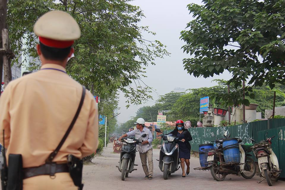 Lực lượng CSGT vẫn túc trực, tổ chức phân luồng, chỉ dẫn các phương tiện dắt bộ tránh gây lộn xộn, một số trường hợp ngồi trên xe di chuyển lập tức bị lực lượng chức năng dừng xe, lập biên bản.