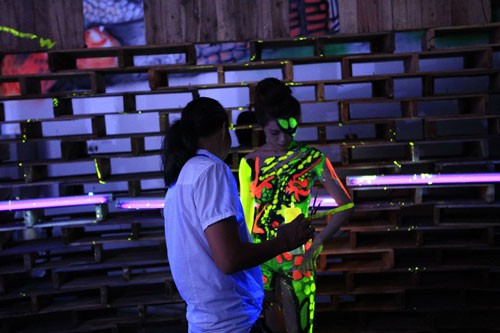 Một cảnh vẽ bodypainting lên cơ thể người mẫu