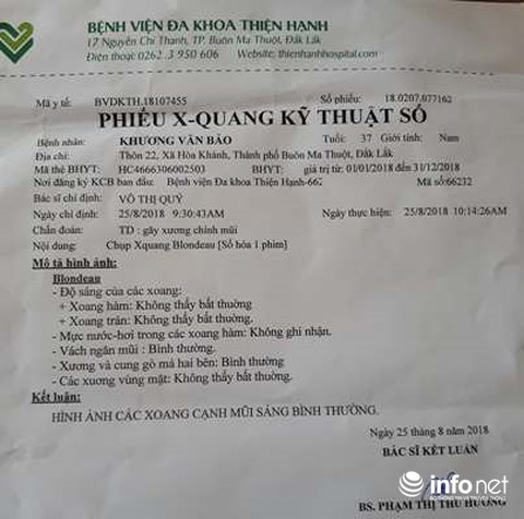 Theo kết luận của bác sĩ, thầy Bảo bị gãy xương chính mũi.