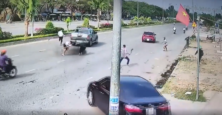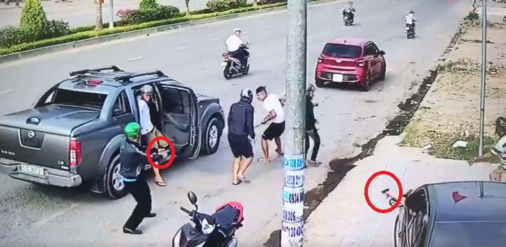 Trong đoạn clip cho thấy, vụ ẩu đả giữa 1 nhóm giang hồ (khoảng 10 người) đi trên 2 ô tô và 2 xe máy cầm theo mã tấu, rựa… nói chuyện với một tài xế ngồi trong ô tô khác. Được một lúc, nhóm này lao vào đánh tới tấp và đuổi chém người đàn ông đứng cạnh đó khiến người này phải rút súng bóp cò tự vệ. Vụ việc diễn ra giữa đường phố khiến 2 người bị thương, nhiều người tham gia giao thông một phen hoảng sợ.