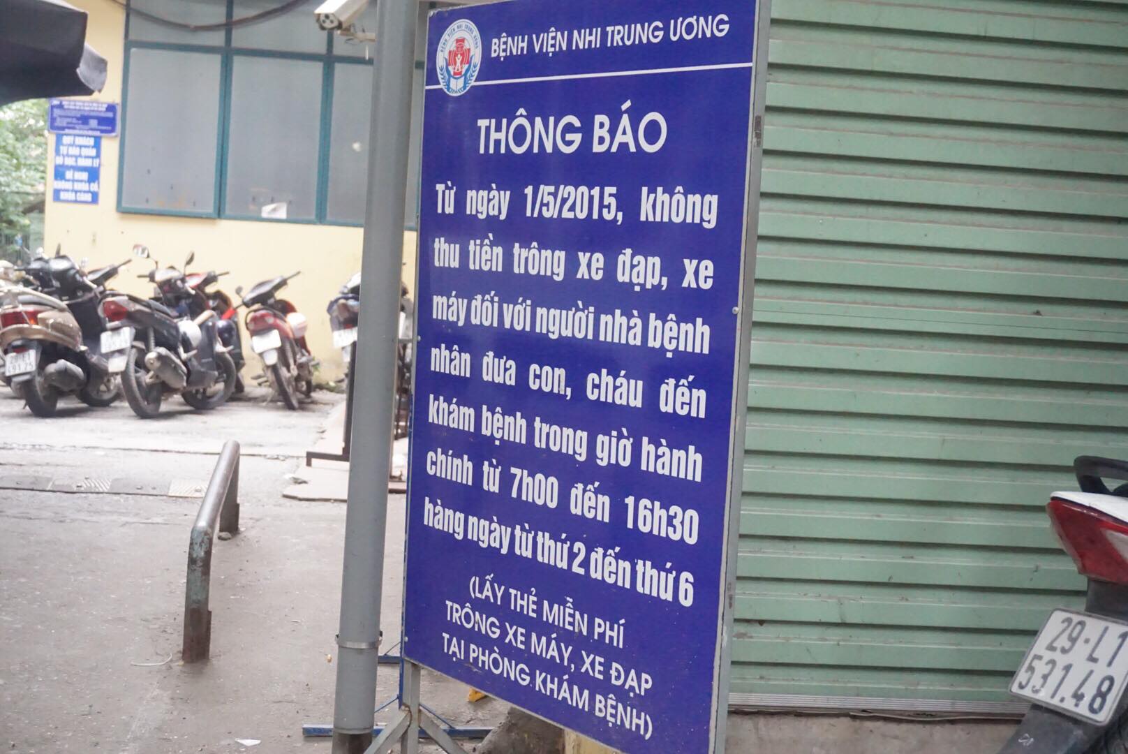 Thông báo không thu tiền trong xe đạp, xe máy đối với người nhà bệnh nhân trong giờ hành chính.