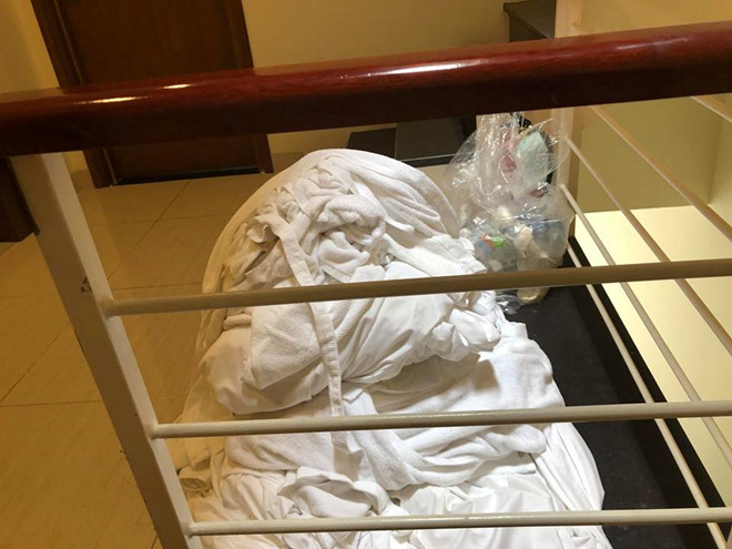 “Về nguyên tắc tại khách sạn tất cả trang thiết bị khi phục vụ khách hàng, theo tiêu chuẩn không được phép để tình trạng chăn ga gối đệm cũng như nền nhà không được để bẩn như thế”, ông Sơn nêu rõ.
