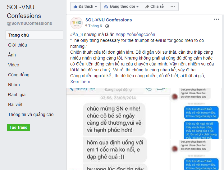 Những thông tin liên quan đến một giảng viên liên tục được chia sẻ trên trang SOL - VNU Confessions.