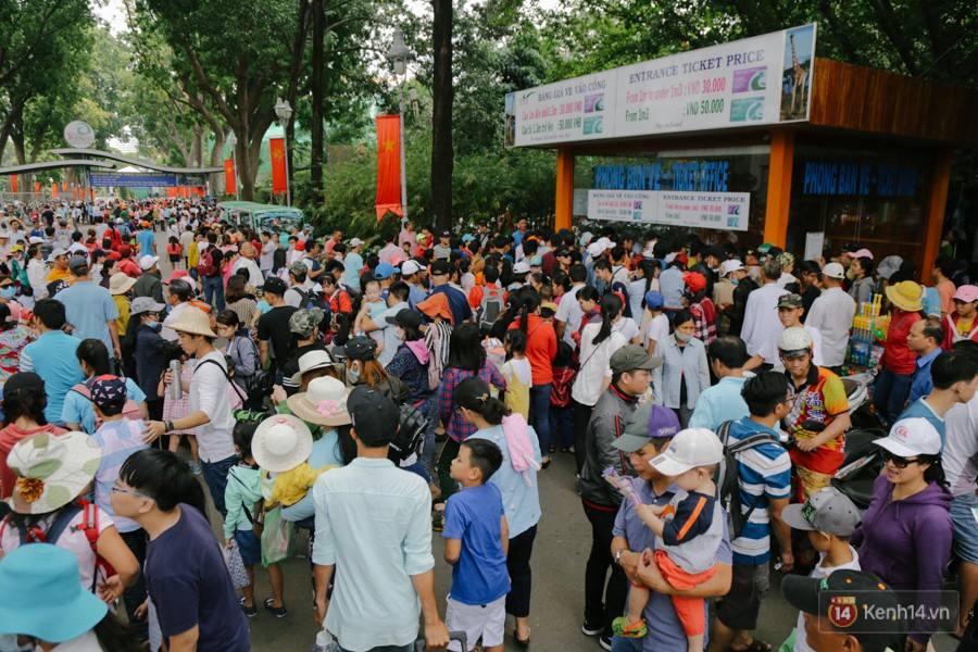 Nhiều gia đình từ các tỉnh thành lân cận đổ về đây mang theo những vật dụng như bạt, võng, đồ ăn… để tận hưởng kỳ nghỉ lễ tại sở thú lớn nhất Sài Gòn - Ảnh: Tuổi trẻ.