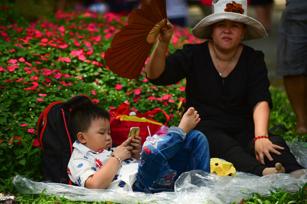 Thời tiết nắng nóng khiến trẻ em dễ mệt khi vui chơi, lượng người đông đúc cũng làm nhiều bé khó chịu - Ảnh: Tuổi trẻ.