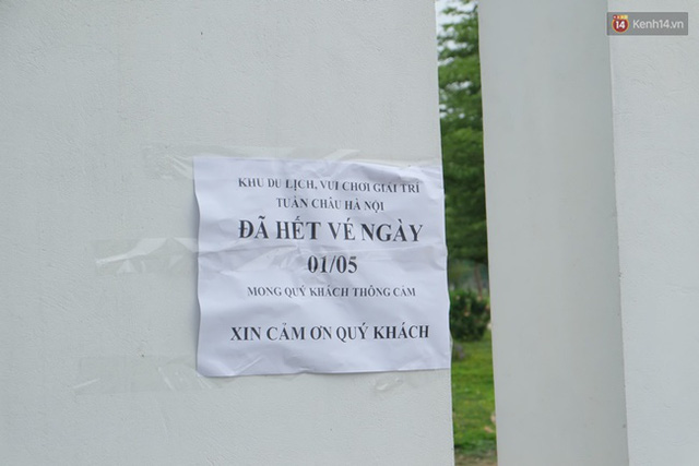 Biển báo hết vé ngày 1/5 dán khắp nơi chưa được tháo xuống.