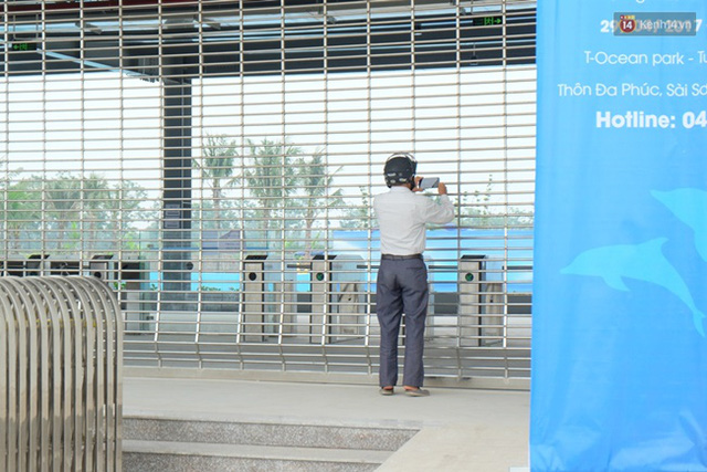 Người đàn ông đứng từ ngoài chụp lại khung cảnh phía bên trong khu du lịch vui chơi, giải trí Tuần Châu (Hà Nội).