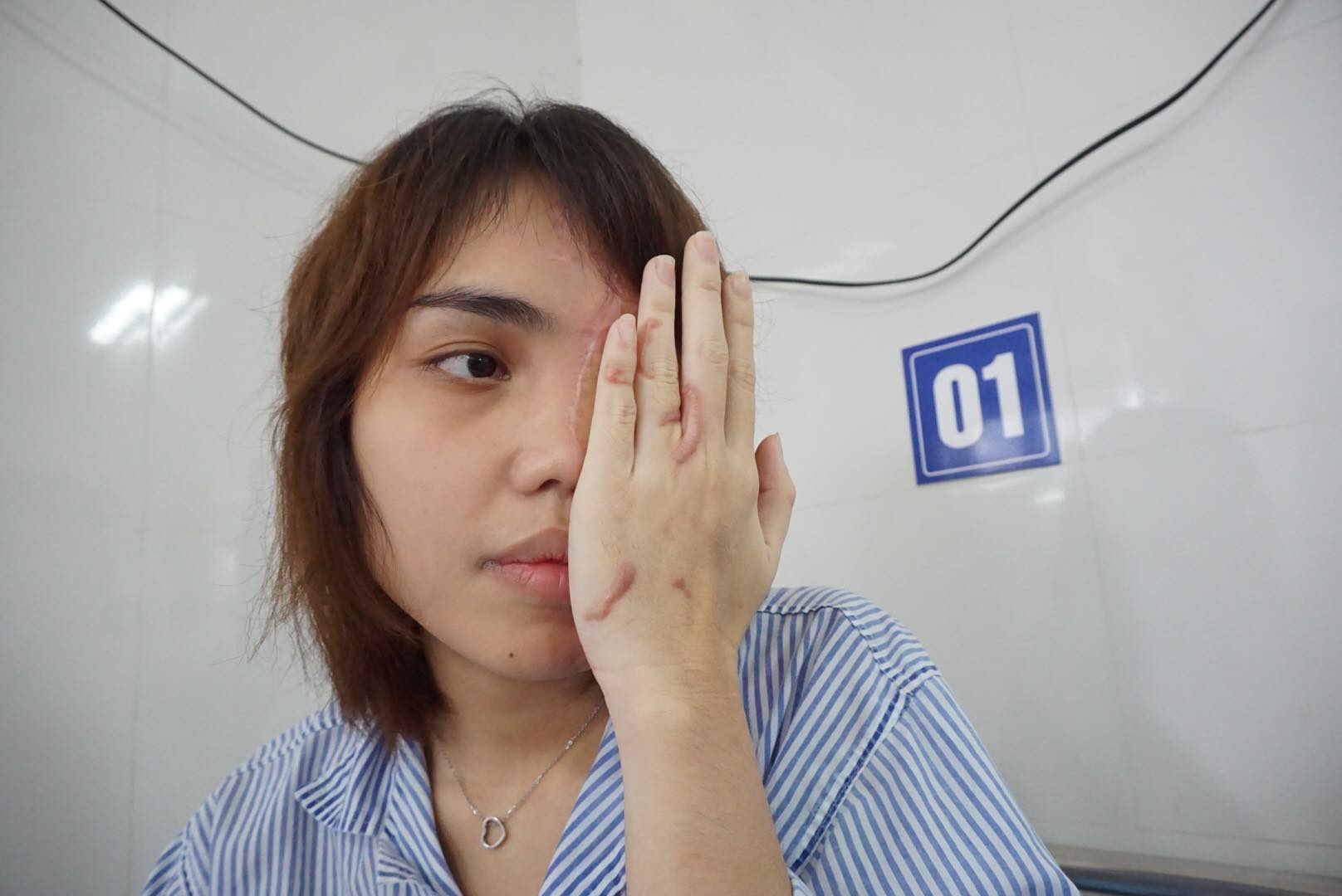 Không những mặt, tay chân Vy cũng bị nhiều vết bỏng do axit gây ra.