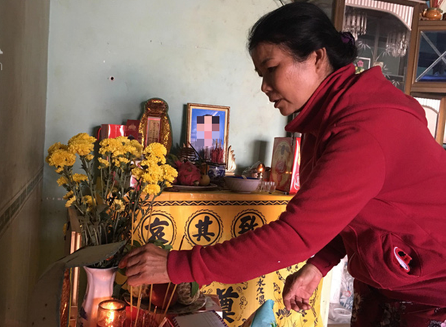 Bà nội của bé A. thắp nén hương lên bàn thờ của đứa cháu tội nghiệp.
