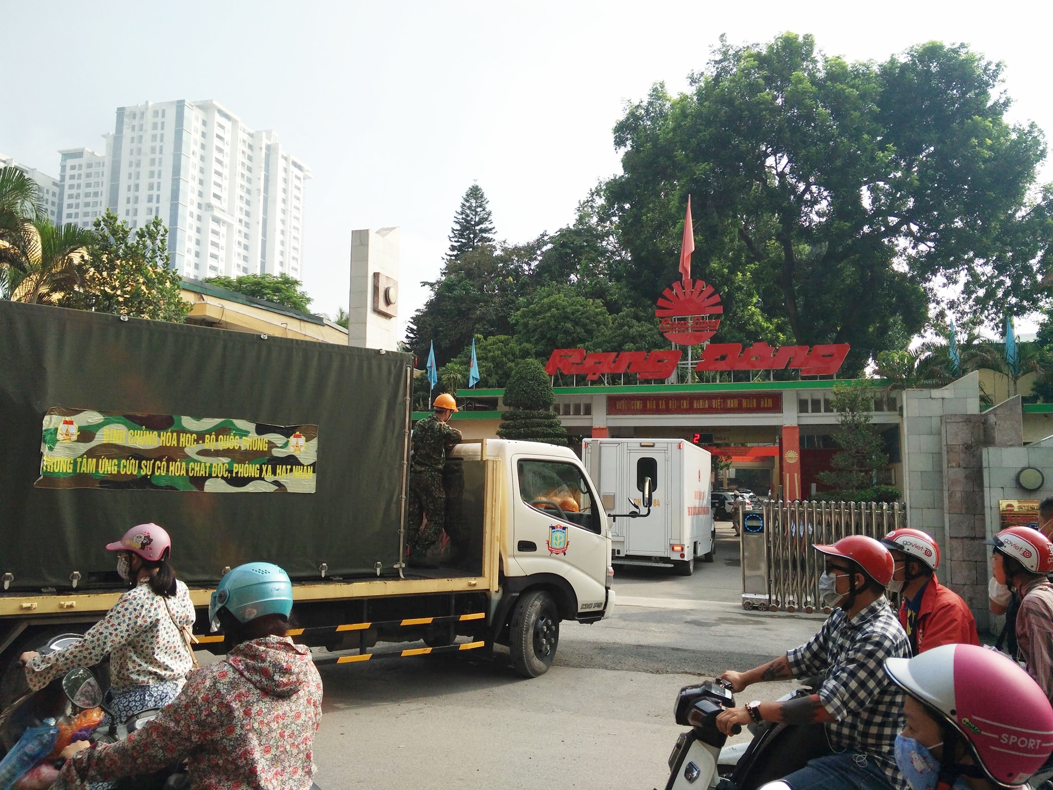 Đúng 8h sáng Trung tâm Ứng cứu sự cố hóa chất độc phóng xạ, hạt nhân thuộc Binh chủng Hóa học, Bộ Quốc phòng đã có mặt tại Công ty cổ phần Bóng đèn phích nước Rạng Đông. Đoàn xe gồm 4 chiếc đặc chủng lần lượt vào phố Hạ Đình và tiến vào cổng chính nhà máy.