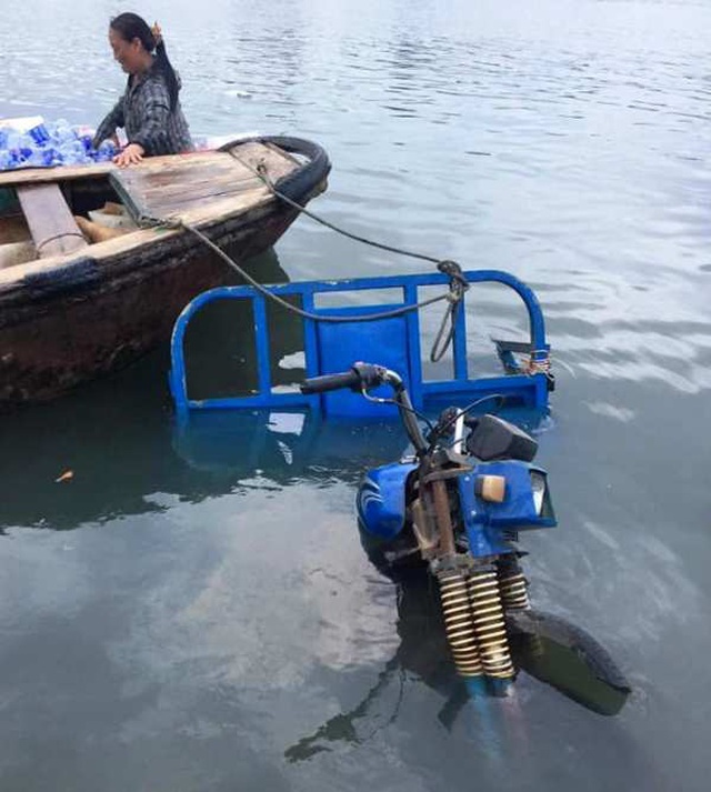 Trong lúc cứu các cháu nhỏ, chiếc xe ba gác máy của anh Trọng bị trôi xuống sông. Người dân sau đó đã giúp anh trục vớt chiếc xe.