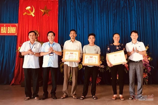 Ông Trần Văn Sơn - Chủ tịch UBND xã Hải Bình, huyện Tĩnh Gia cho biết, UBND xã đã tặng giấy khen cho 3 người cứu sống nhóm cháu nhỏ đuối nước là: anh Phan Văn Trọng (SN 1977), chị Lê Thị Huyền (SN 1973) và anh Lê Văn Anh (SN 1982), đều là người địa phương.