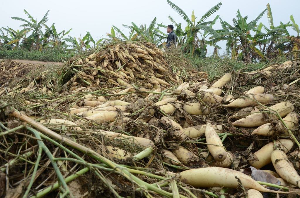 Như chúng tôi đã đưa, những ngày vừa qua, nhiều hộ dân ở xã Tráng Việt, huyện Mê Linh, Hà Nội phải đổ bỏ hàng chục, thậm chí hàng trăm tấn củ cải vì không tiêu thụ hết. Do năm nay củ cải được mùa, thêm vào đó việc thu mua chậm và giá chỉ 500 đồng đến 1000 đồng/kg, trong khi thời điểm trước Tết 6000-8000 đồng/kg.