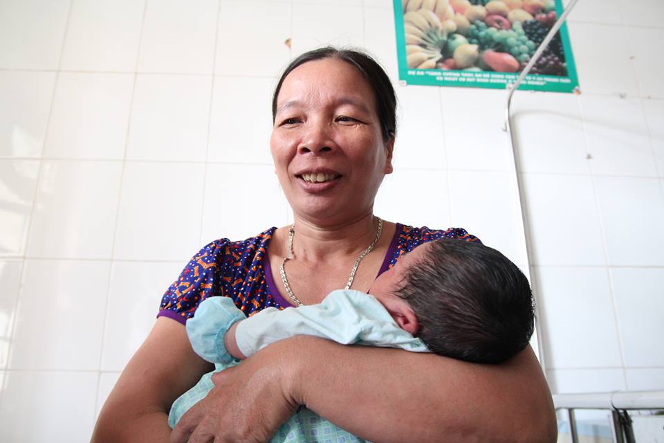 Bà Thủy vui vẻ đón cháu ngoại mới sinh được 7,1kg.
