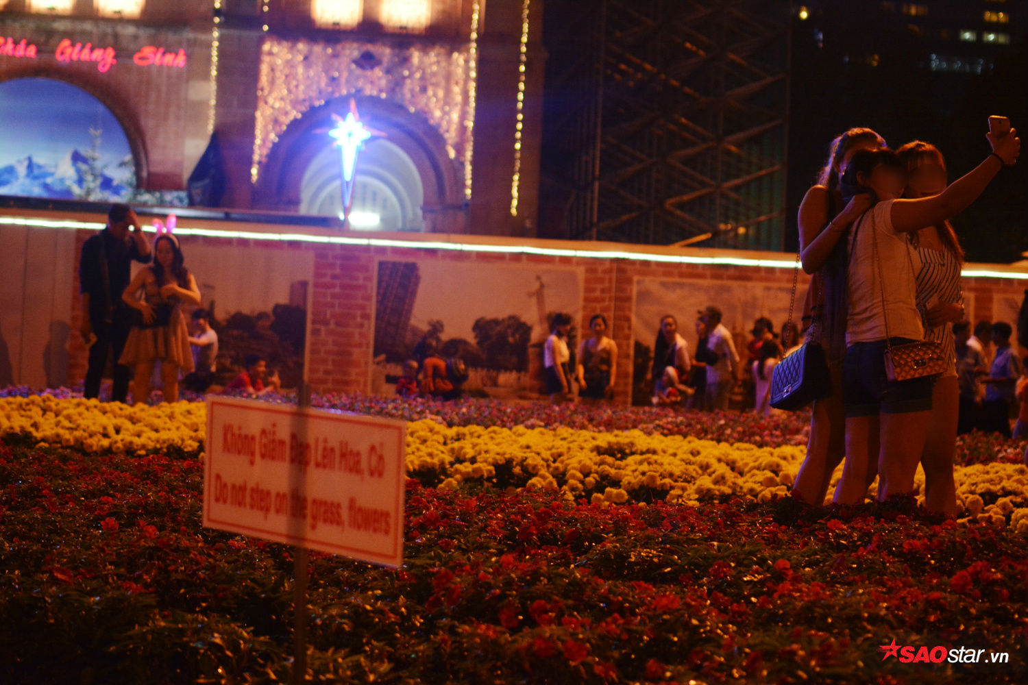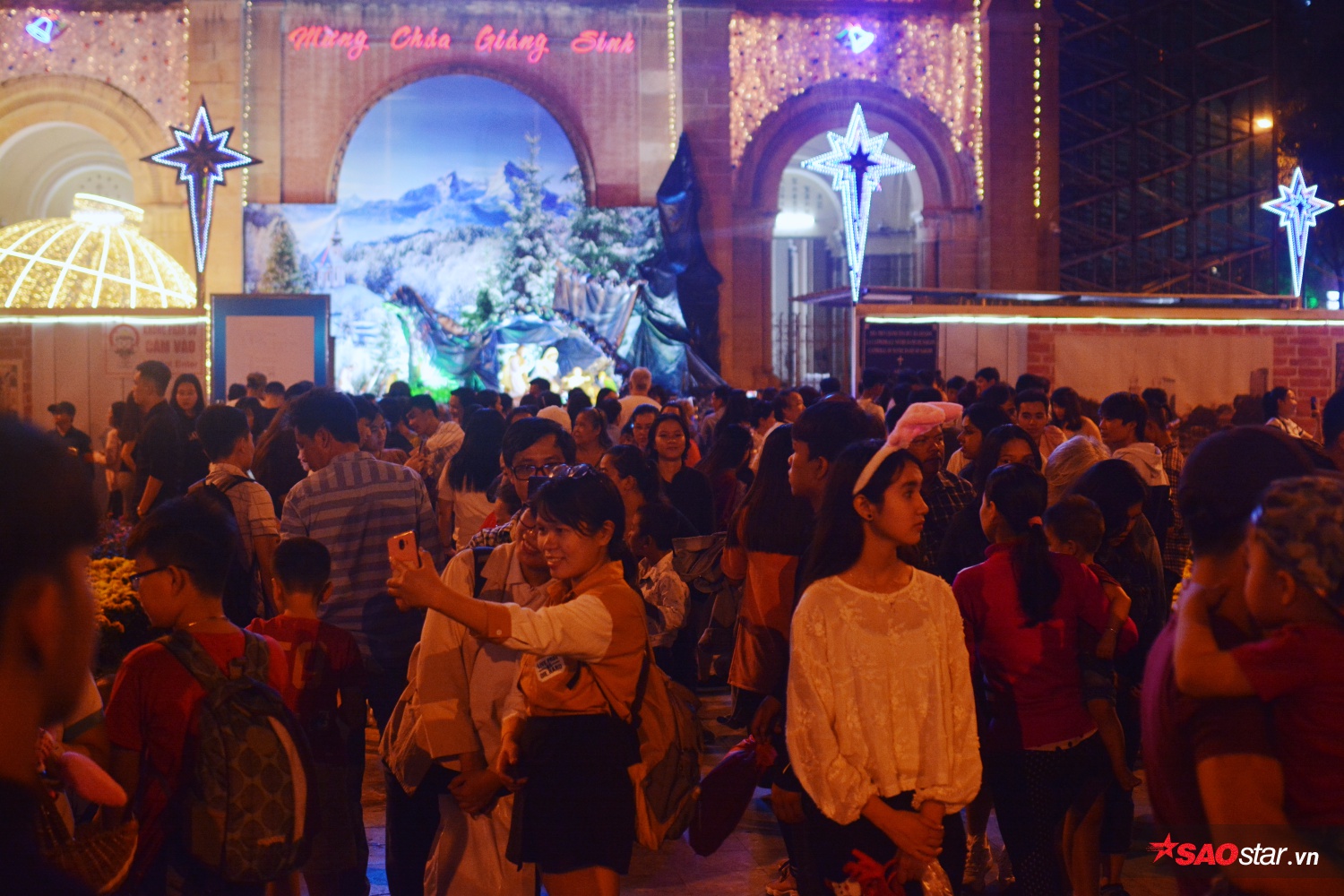 Tối 24/12, hàng chục nghìn người Sài Gòn đã đổ về các khu vực trung tâm để vui chơi Giáng sinh. Bên cạnh một số địa điểm quen thuộc như xóm đạo Q.8, TTTM Daimond, nhà thờ Tân Định,… nhà thờ Đức Bà (Q.1, TP.HCM) tuy đang sửa chữa nhưng vẫn thu hút lượng lớn khách tham qua.