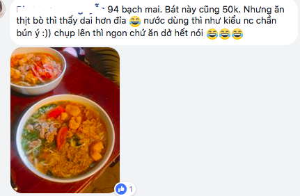 Mới đây, trong các nhóm hội kín về ẩm thực trên mạng xã hội, các thành viên đang chia sẻ rất nhiều ý kiến về dịch vụ ăn uống ngày Tết: vừa đắt đỏ, vừa không ngon miệng. Trong đó, một thành viên sau khi đến ăn bún bò tại một quán ăn ở Bạch Mai (Hà Nội) đã có vài lời chia sẻ như sau: ““Bát này cũng 50.000 đồng nhưng thịt bò thì thấy dai hơn đỉa, nước dùng thì như kiểu nước chần bún. Chụp ảnh lên thì ngon chứ ăn dở hết nói.”