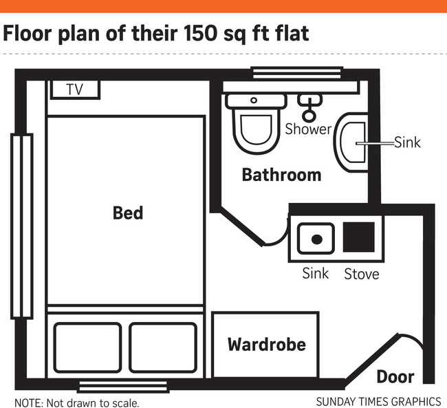 Mặt bằng một căn hộ rộng khoảng 14m2 tại Hong Kong.