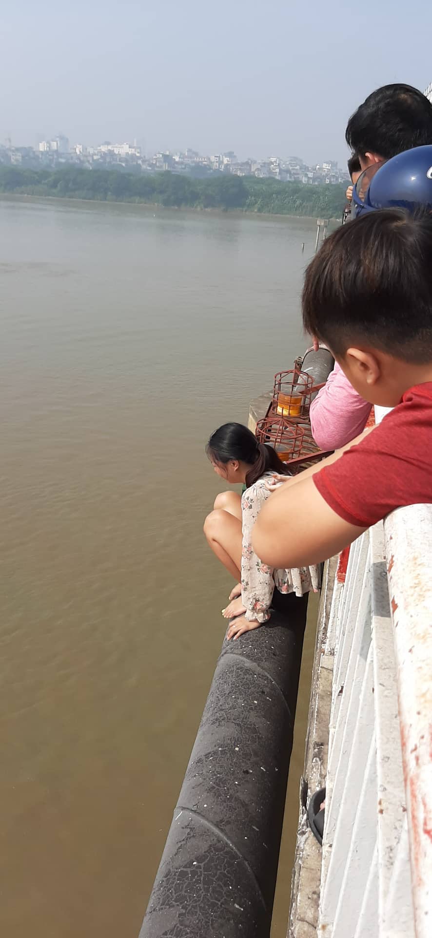 Khoảng 9h15 sáng 5/10, tại nhịp số 10, cầu Chương Dương, Hà Nội, một phụ nữ bỏ lại con nhỏ ỏ thành cầu Chương Dương rồi bất ngờ trèo qua la can cầu ngồi khóc lóc.