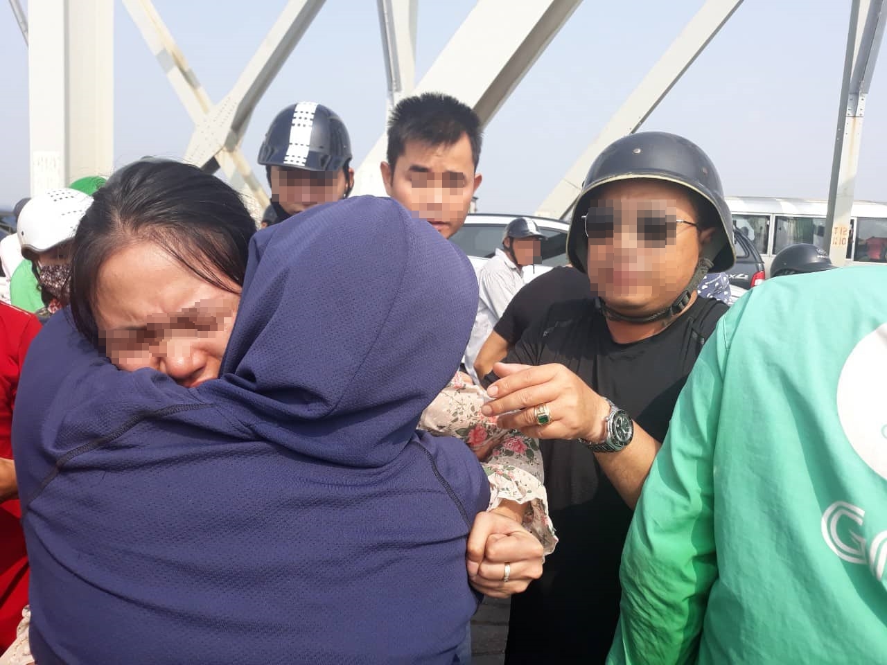 Sau gần 1h khuyên giải, dùng biện pháp tâm lý tác động từ cháu bé để mẹ bình tĩnh trở lại, các chiến sĩ CSGT và tổ bảo vệ cầu đã đưa người phụ nữ lên cầu an toàn. Lúc vừa quay lại cầu người phụ nữ này ôm người thân bật khóc rồi sau đó dắt tay con trai về trụ sở công an.