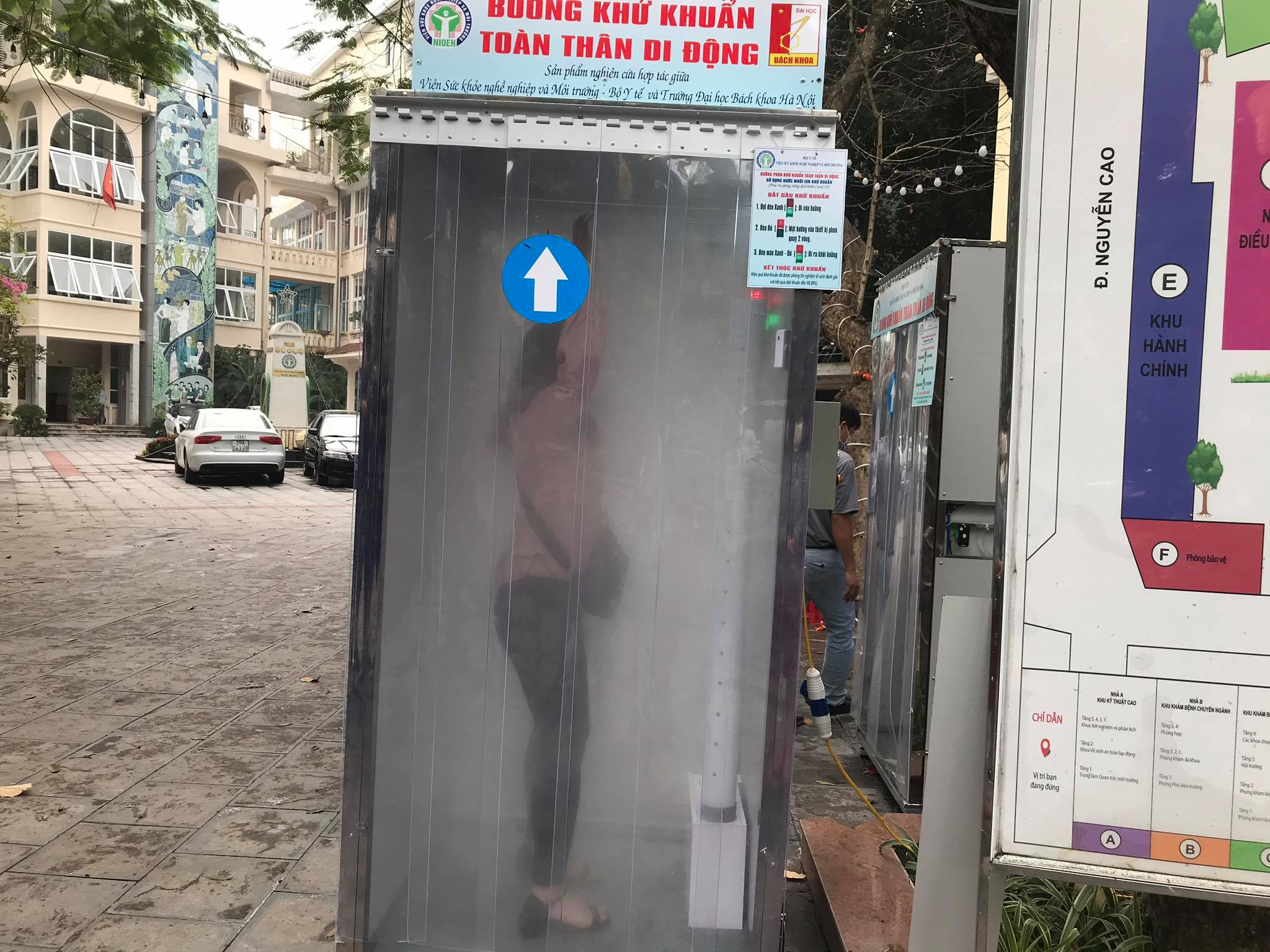 Mới đây Viện Sức khoẻ Nghề nghiệp và Môi trường (Bộ Y tế) đã kết hợp cùng với trường Đại học Bách khoa Hà Nội sáng chế ra buồng khử khuẩn toàn thân di động để phòng, chống dịch Covid-19.