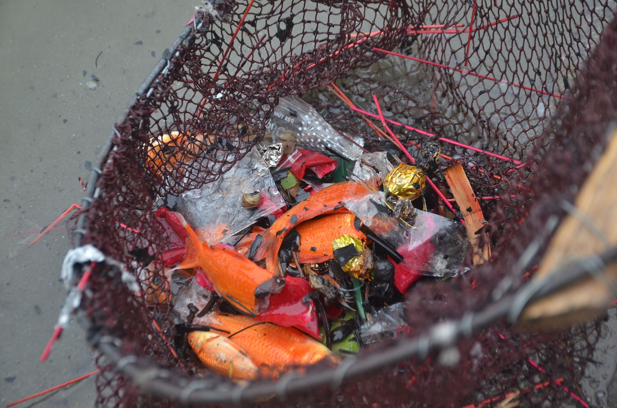 Cá chết lẫn trong rác thải