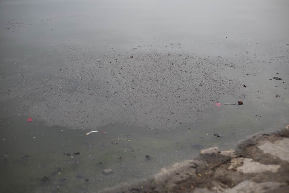 Dòng nước đục ngầu do nhiều người đổ tro bát hương xuống