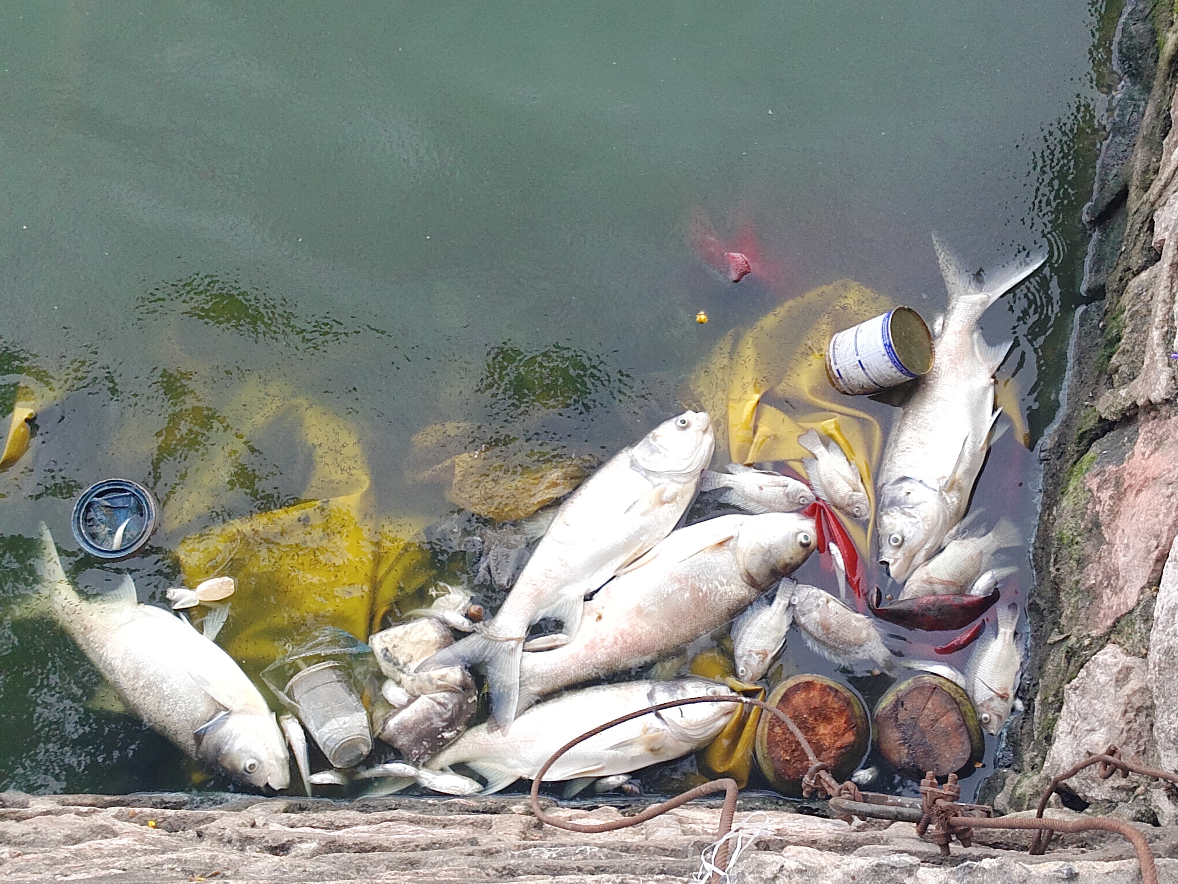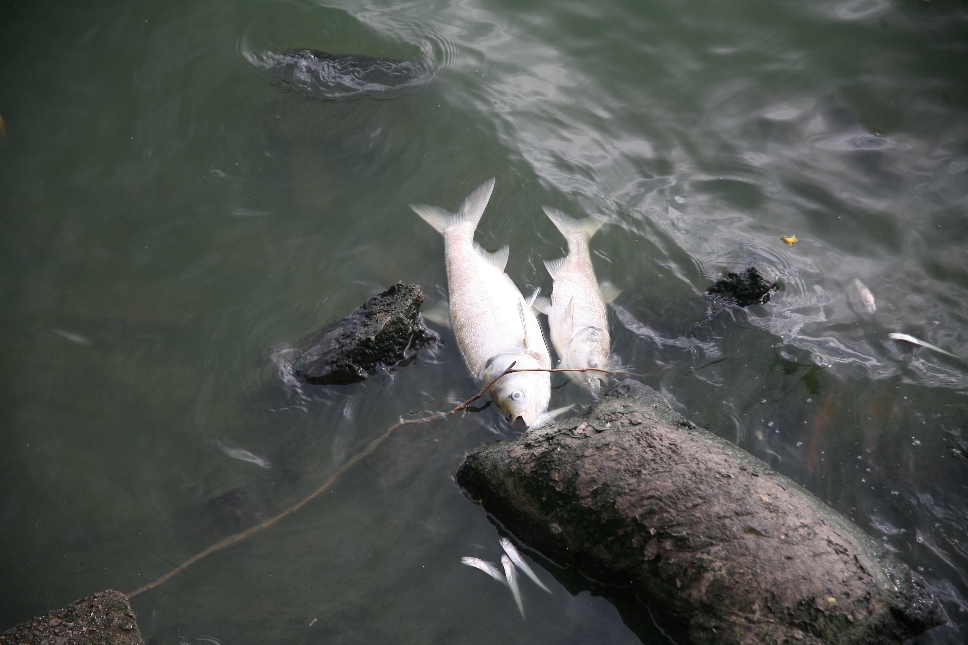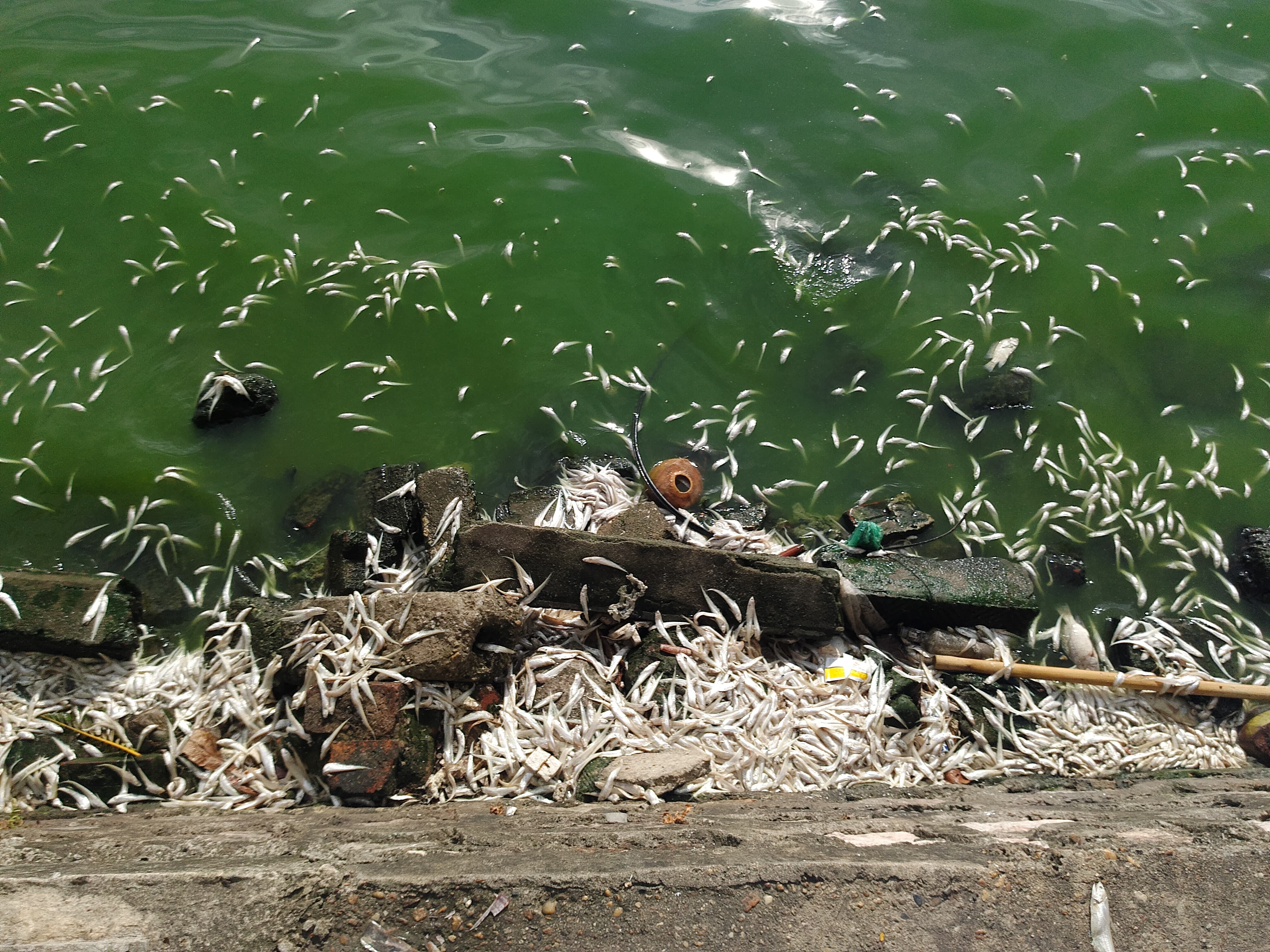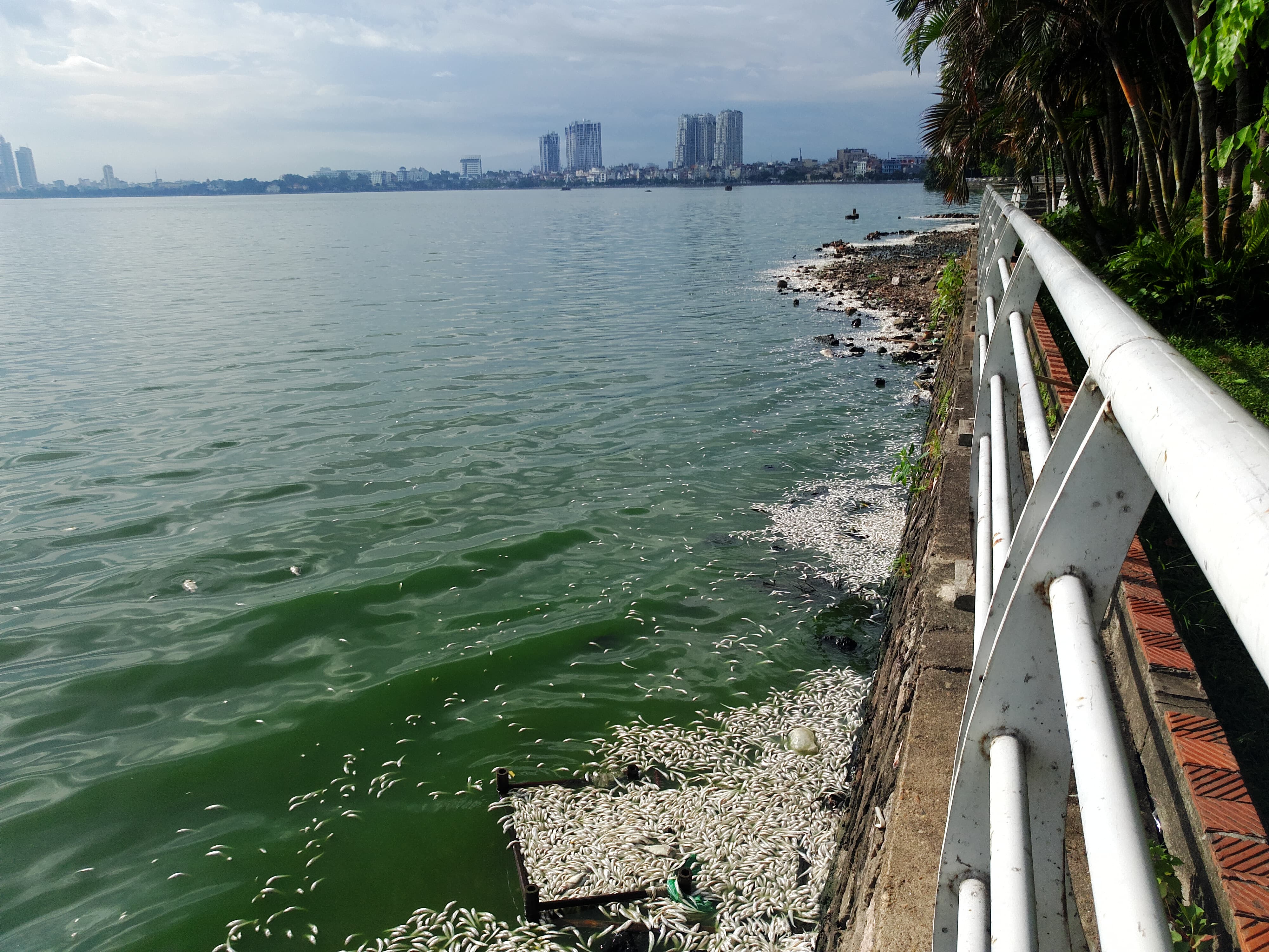 Khu vực đường Vệ Hồ và Nhật Chiêu rất nhiều loại cá chết trắng nổi ven hồ với đủ các loại như cá mè, rô phi, cá chép.