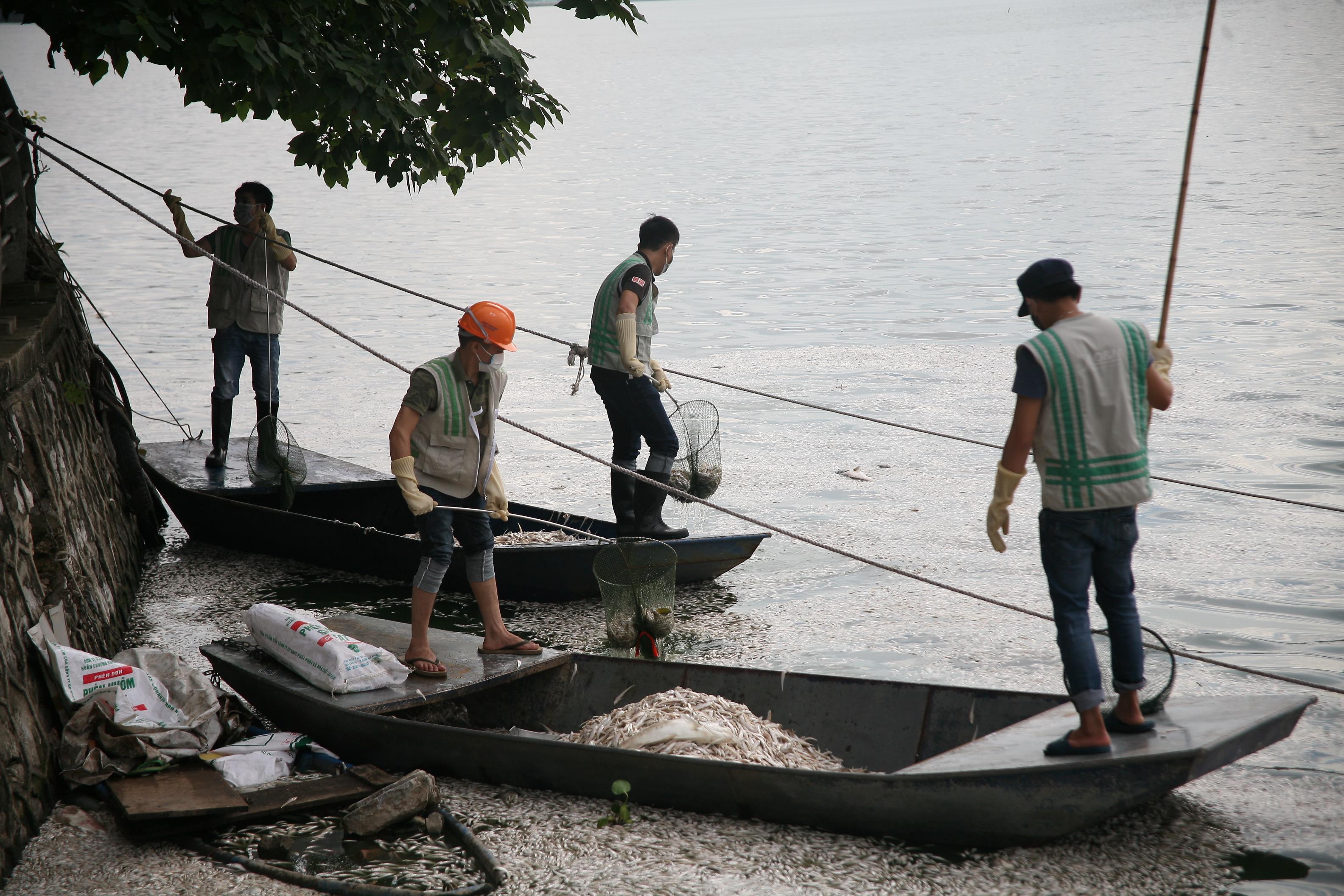 Mới đây, trong 2 ngày 7- 8/7, cá lại chết hàng loạt ở hồ Tây (Tây Hồ, Hà Nội) khiến công nhân công ty môi trường phải thức trắng đêm dọn xác cá.