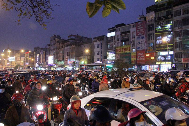 Cảnh tượng ùn tắc tối 16/1. Ảnh: Trần Thường