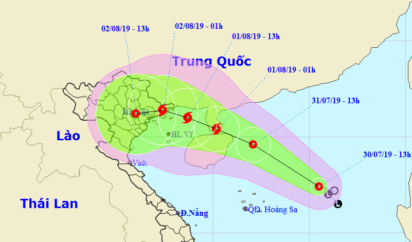 Theo Trung tâm Dự báo Khí tượng Thủy văn Quốc gia, hồi 1h ngày 31/7, vị trí tâm áp thấp nhiệt đới cách quần đảo Hoàng Sa khoảng 230km về phía Đông Bắc.